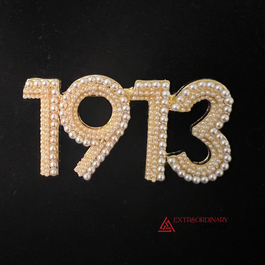 Approximately 2” wide, this 1913 gold pearl pin is the perfect way to accentuate your favorite red or white dress for formal meetings. Or you can wear it causally on your favorite denim shirt or jacket.