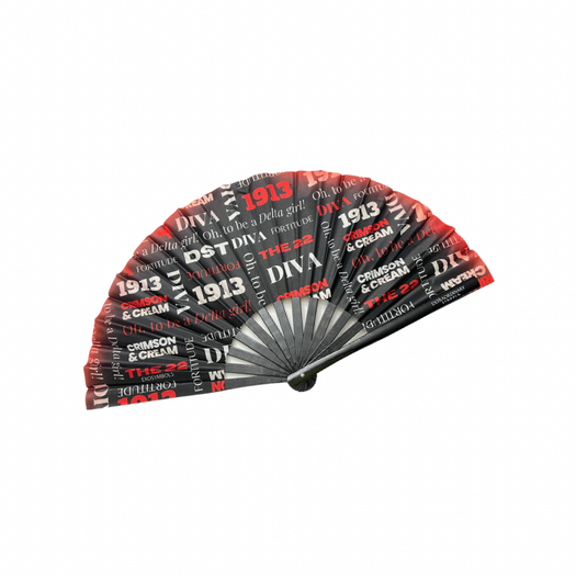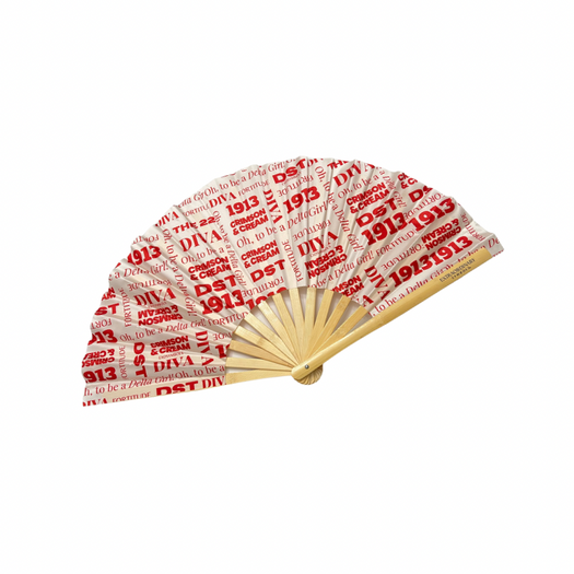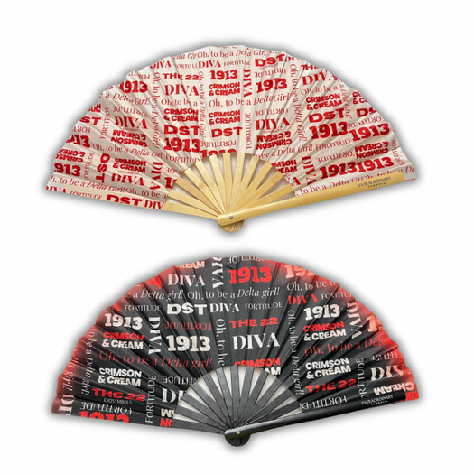 Crafted with durable bamboo spokes and adorned with iconic Delta sayings in vibrant crimson, cream, and black, each fan celebrates the legacy, strength, and sisterhood of Delta Sigma Theta Sorority, Inc.