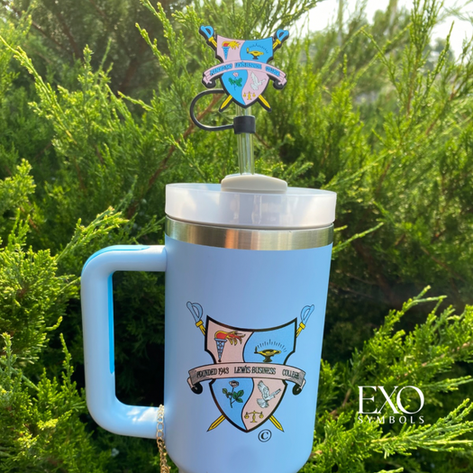 - TWO straw toppers (one of the crest and the other of the greek letters);
