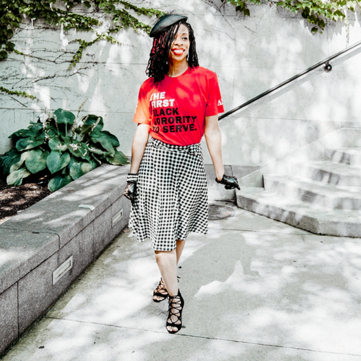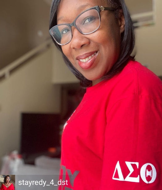 This red tee captures the date of the Sorority's first public act - March 3, 1913 - on the right sleeve and ΔΣΘ on the left sleeve.